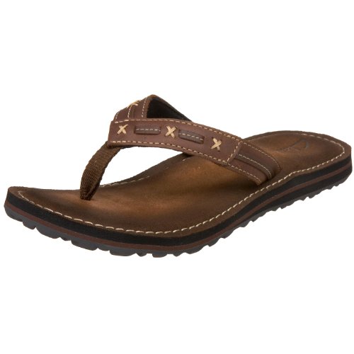 Clarks knows comfort. Their Hyannis thong sandal looks rugged, but is really a softie underneath. Pre-weathered leather on the upper straps is backed by synthetic inner linings for smooth wear, and a fabric toe-bar for no-chafe strolling. The EVA insole equals all-day ease, and the substantial, ultra-treaded, rubber outsole adds even more cush, and welcome non-slip grip.