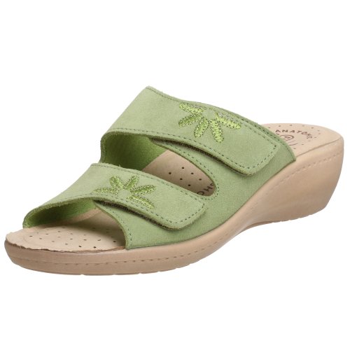 Pamper your feet with these comfortable slides from the Fly Flot Essentials Collection. Soft suede upper featuring double strap with hook-and-loop closure. The Fly Flot ReActive insole is specially made to permanently mold to the natural shape of your foot. Flexible EVA sole provides excellent shock absorption with good grip and traction. 1 1/2" heel.