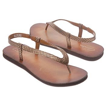 Clarks England Women's Spa Night Pamper your feet in the inviting Spa Night sandals by Clarks England. Full-grain, patent or snake-embossed leather upper in a casual thong sandal style with a round open toe. Stitched toe thong post, slingback heel strap. Smooth lining, leather-to ...